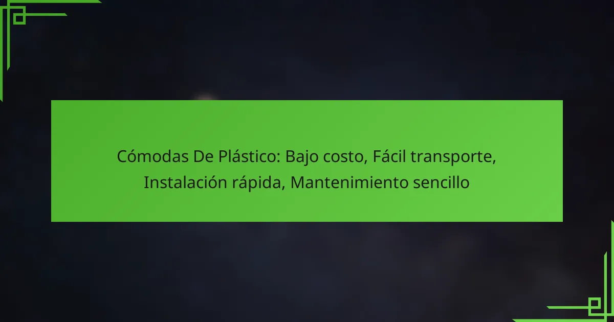 Al comprar cómodas de plástico, es fundamental evaluar el costo, la calidad del material y las opiniones de otros usuarios. Estos factores te ayudarán a tomar una decisión informada y a elegir un producto que se ajuste a tus necesidades y presupuesto.