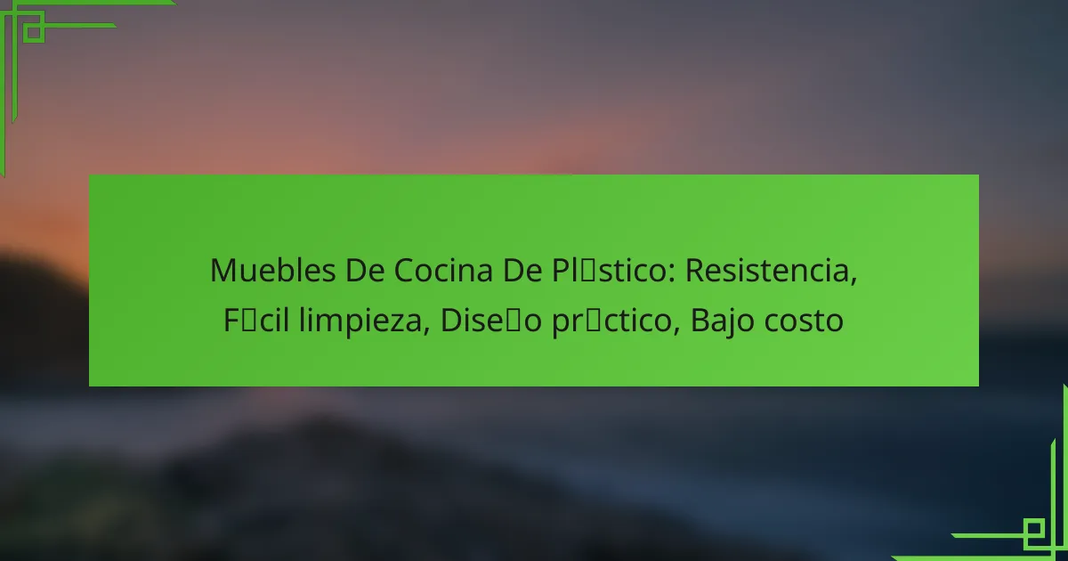 Los muebles de cocina de plástico son elementos de mobiliario fabricados principalmente con materiales plásticos, diseñados para ser funcionales y estéticamente agradables. Su uso se ha popularizado debido a su resistencia, facilidad de limpieza y bajo costo en comparación con otros materiales.